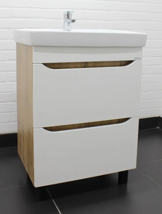 Характеристики товара Тумба под умывальник напольная Домино Bruno 60 белый/дуб вотан DBr2903T