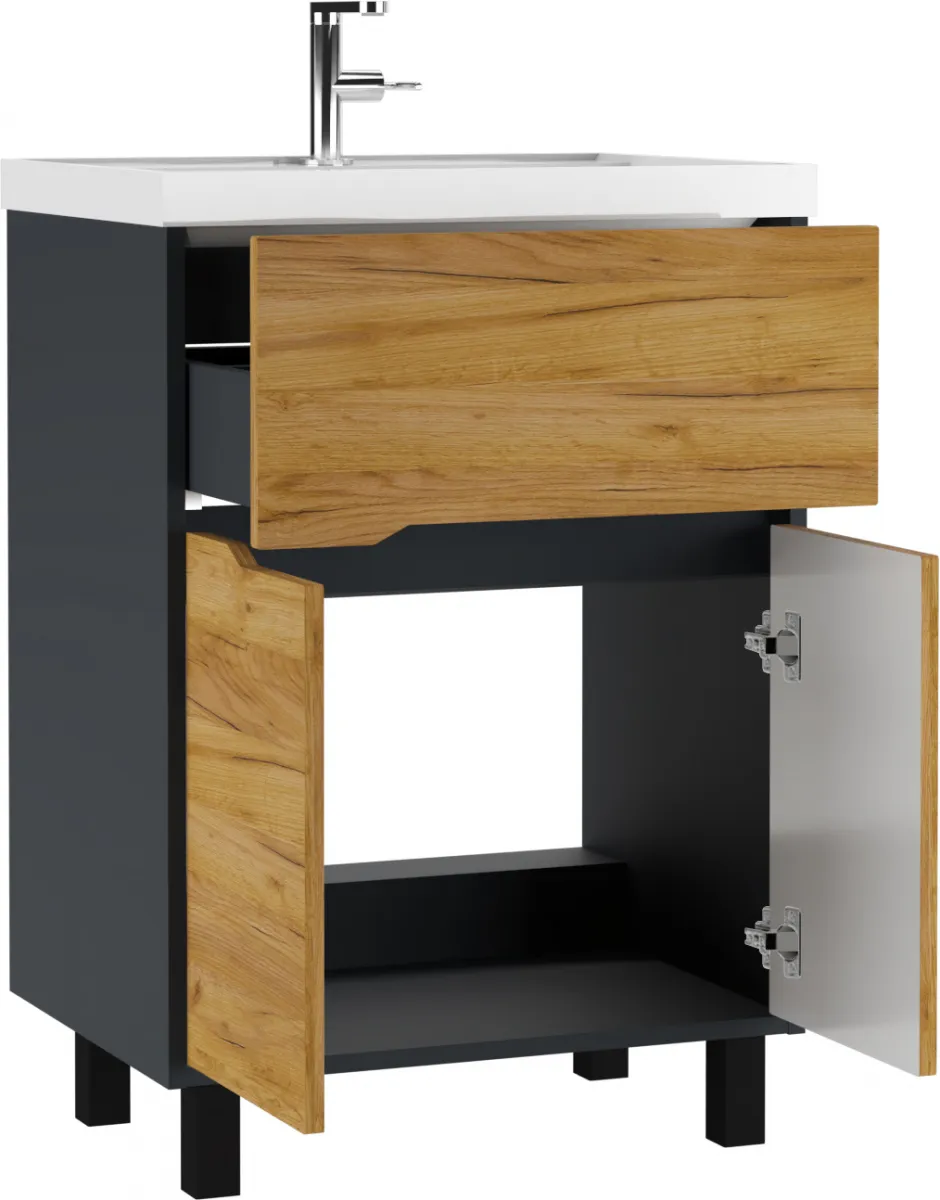Тумба под умывальник напольная Домино Karat 60 дуб вотан/антрацит DK3210T