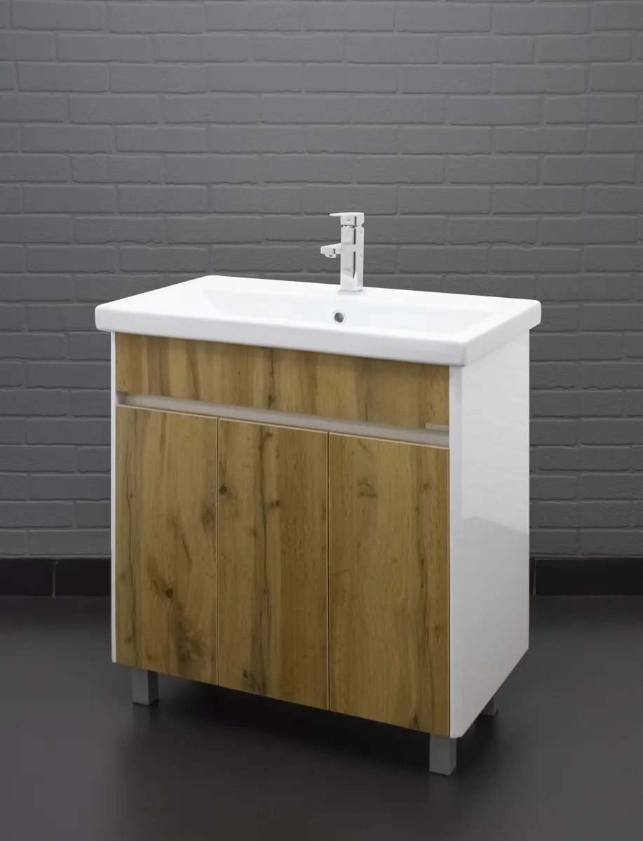 Тумба под умывальник напольная Домино Uno 80 дуб вотан/белый DU1507T