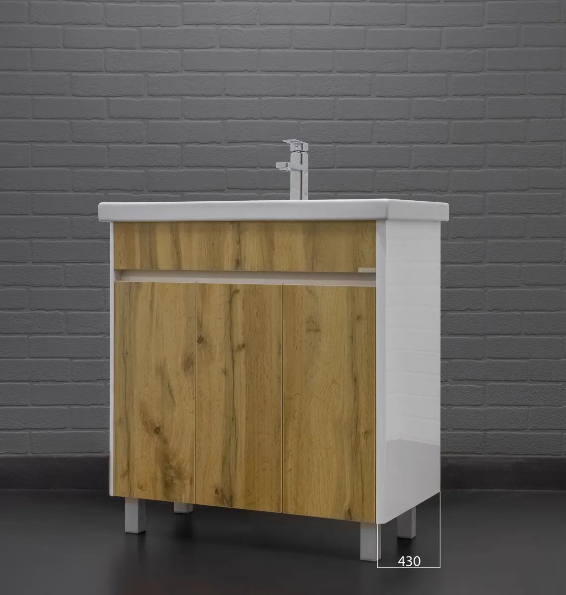 Характеристики товара Тумба под умывальник напольная Домино Uno 80 дуб вотан/белый DU1507T