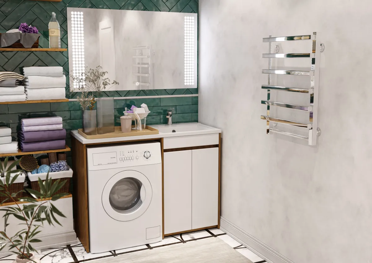 Характеристики товара Тумба под умывальник напольная над стиральной машиной Айсберг Домино 120 белый/дуб вотан DD4213T
