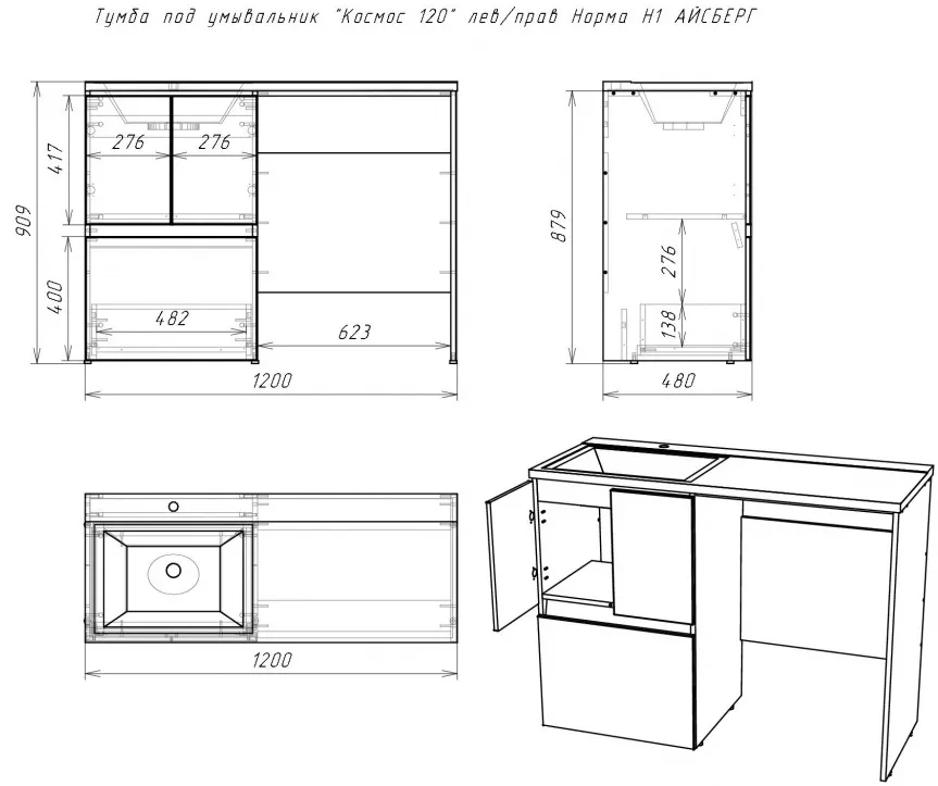 Характеристики товара Тумба под умывальник напольная над стиральной машиной Айсберг Норма 120 белый DA1627T