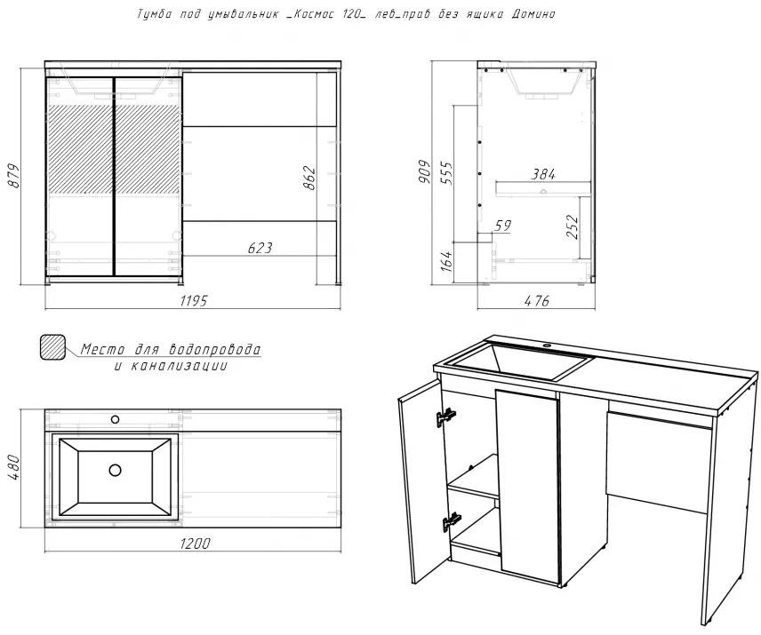 Характеристики товара Тумба под умывальник напольная над стиральной машиной Домино Домино 120 белый DD4212T