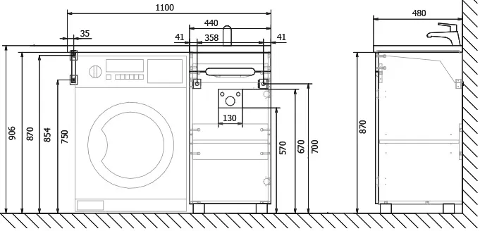 Монтажнапольный, над стиральной машиной