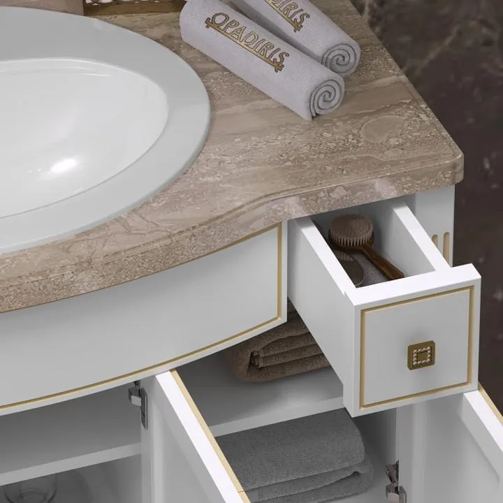 Тумба под умывальник напольная Opadiris Лаура 100 белый матовый/с золотой патиной Z0000007090