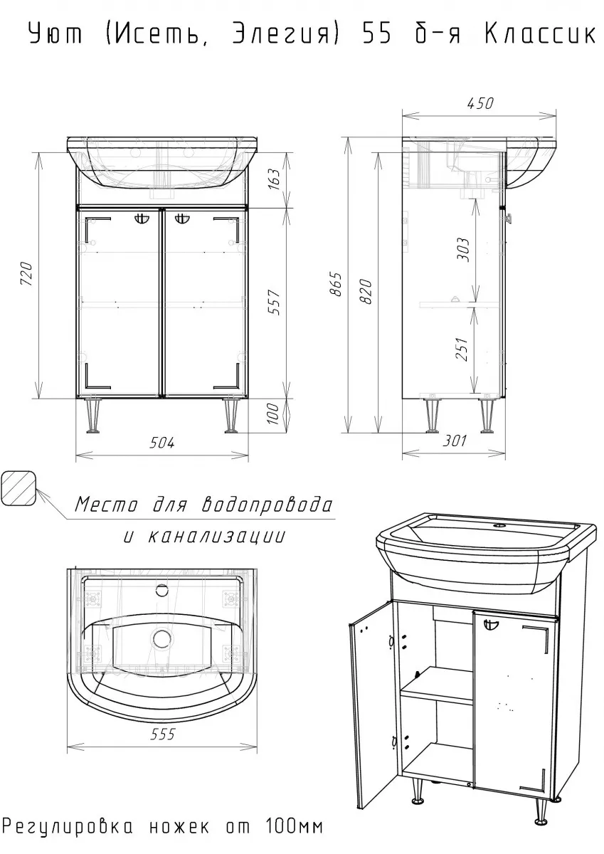 Характеристики товара Тумба под умывальник напольный Айсберг Классик 55 белый DA1018T
