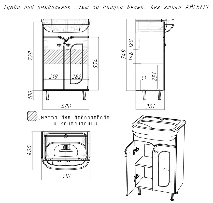 Характеристики товара Тумба под умывальник напольный Айсберг Радуга 50 белый DA1140TR