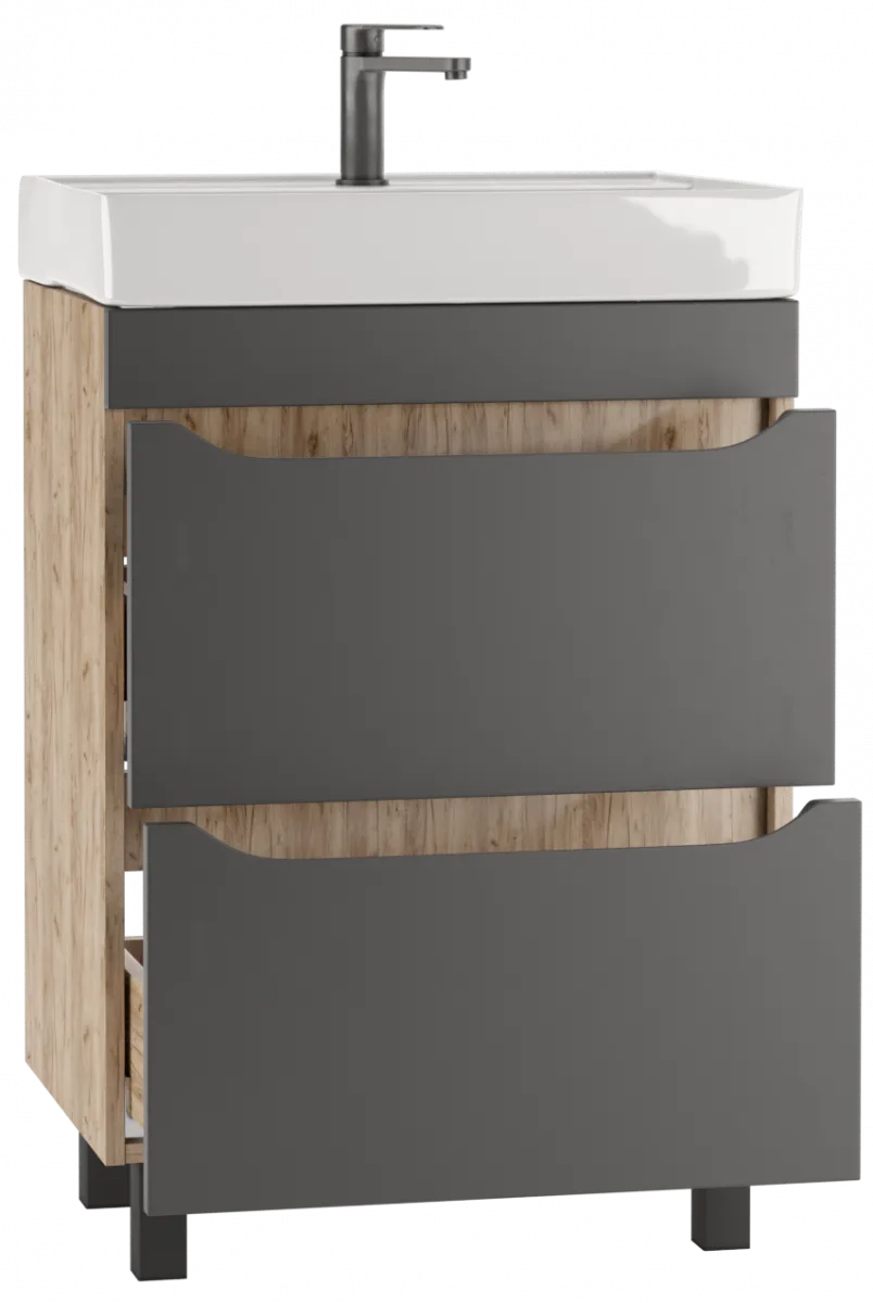 Тумба под умывальник напольный Домино Bruno 60 графит/дуб вотан DBr2901T
