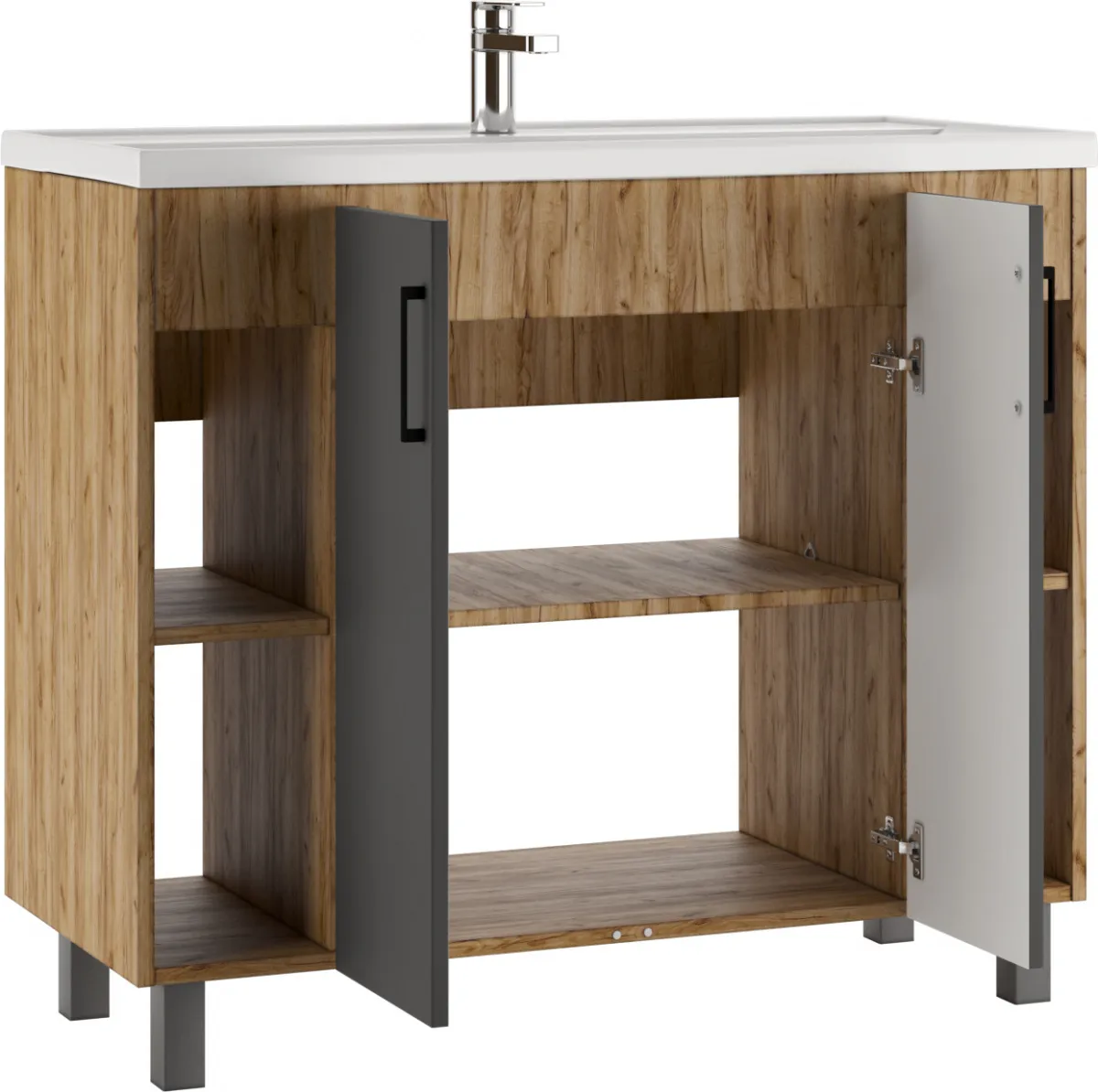 Тумба под умывальник напольный Домино Craft 100 графит/дуб вотан DCr2205T