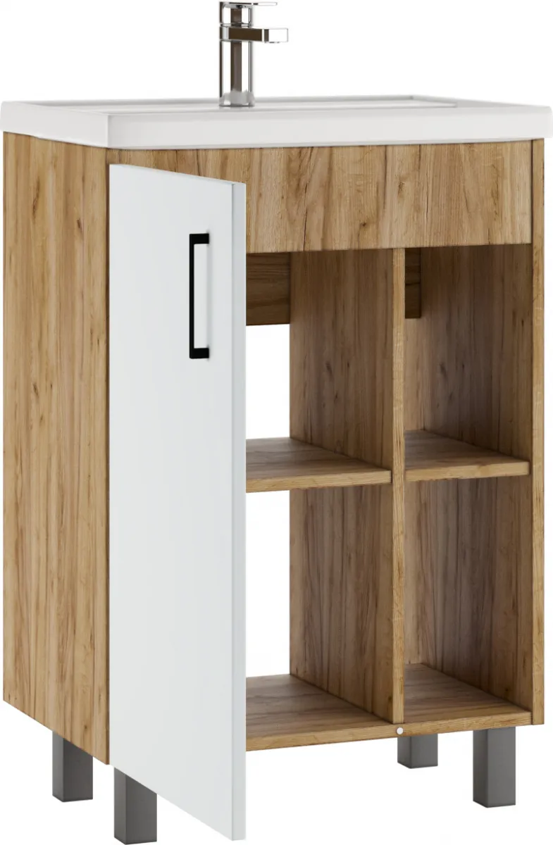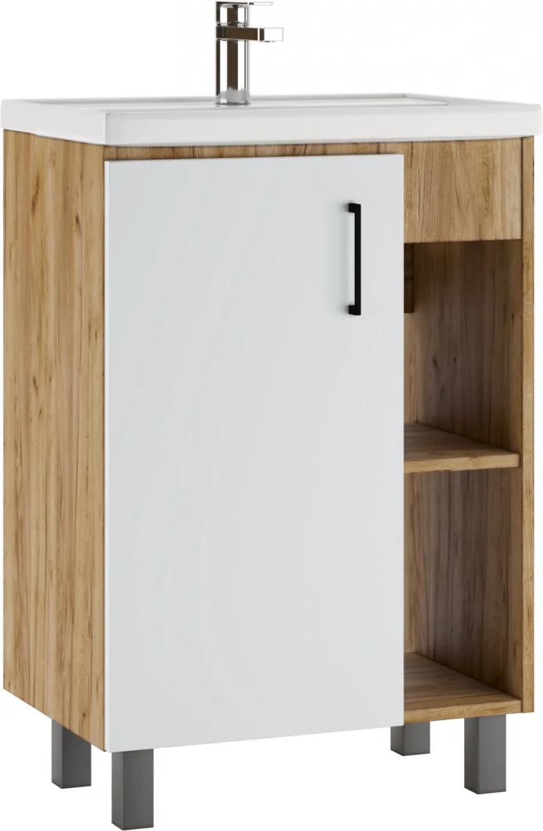 Тумба под умывальник напольный Домино Craft 60 белый/дуб вотан DCr2215T