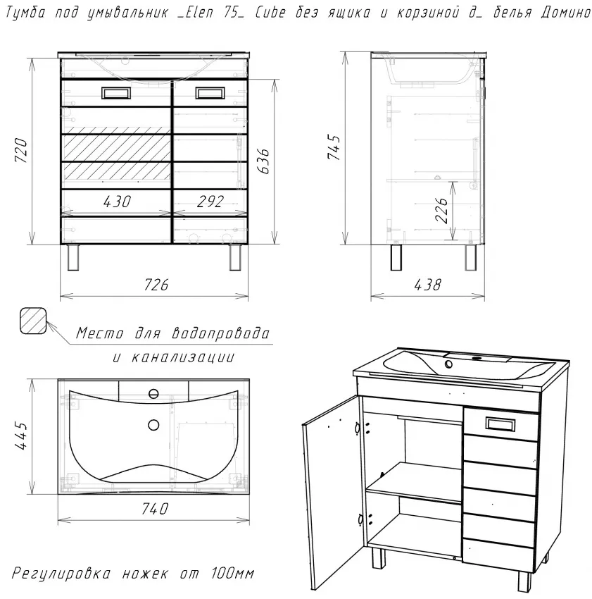 Характеристики товара Тумба под умывальник напольный Домино Elen 75 белый DC5003T