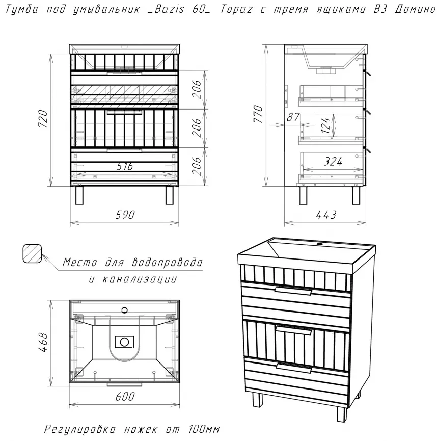 Тумба под умывальник напольный Домино Topaz 60 белый DT6401T