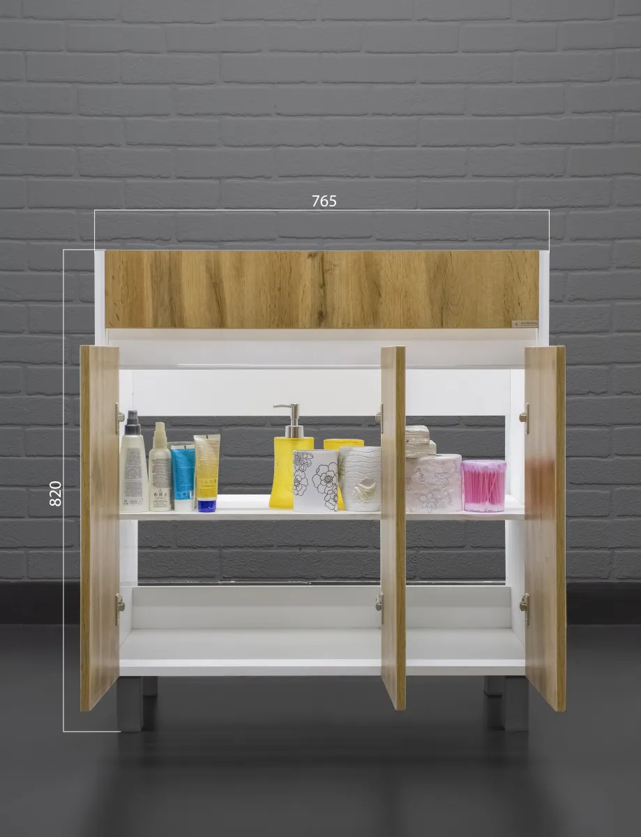 Характеристики товара Тумба под умывальник напольный Домино Uno 80 дуб вотан/белый DU1507T