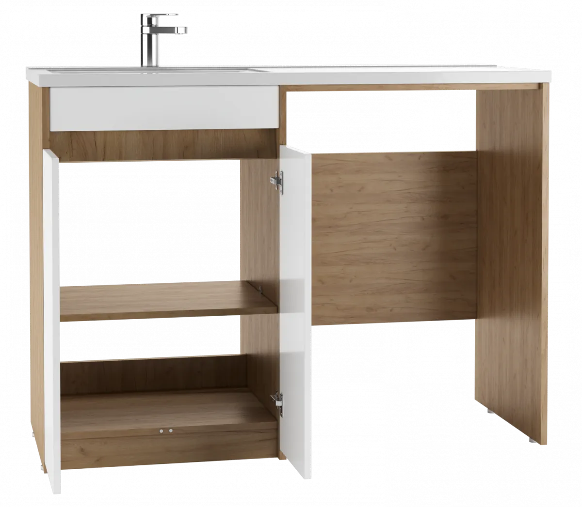Тумба под умывальник напольный, над стиральной машиной Айсберг Домино 120 белый/дуб вотан DD4213T