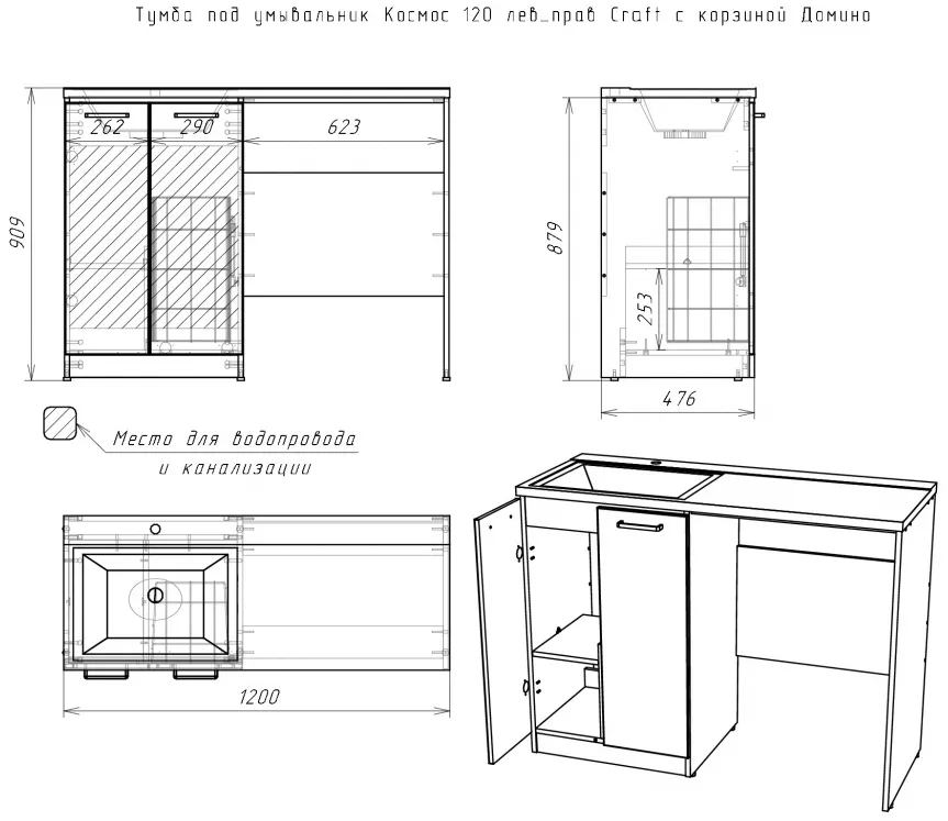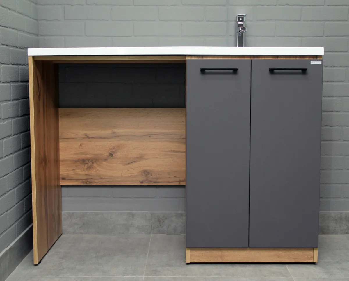 Характеристики товара Тумба под умывальник напольный, над стиральной машиной Домино Craft 120 графит/дуб вотан DCr2214T