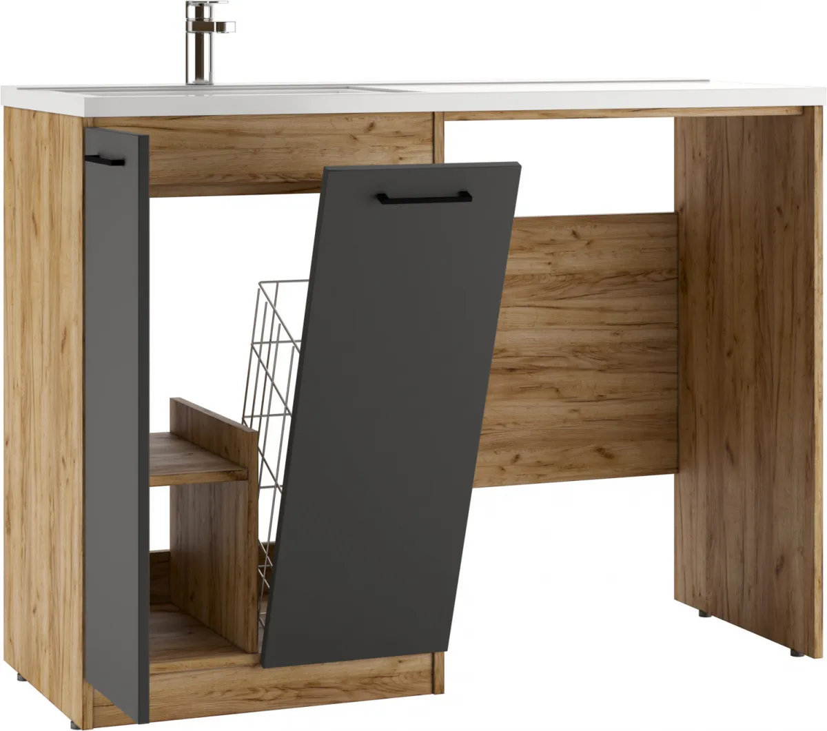 Тумба под умывальник напольный, над стиральной машиной Домино Craft 120 графит/дуб вотан DCr2214T