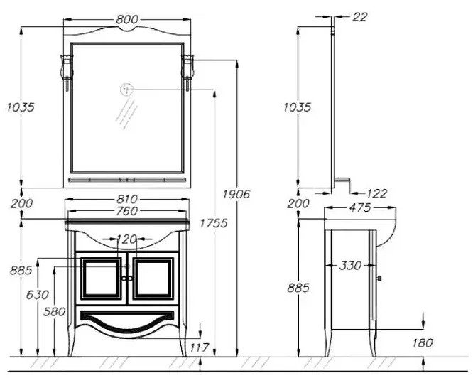 Характеристики товара Тумба под умывальник напольный Opadiris Брунелла 80 белый матовый 00-00003631