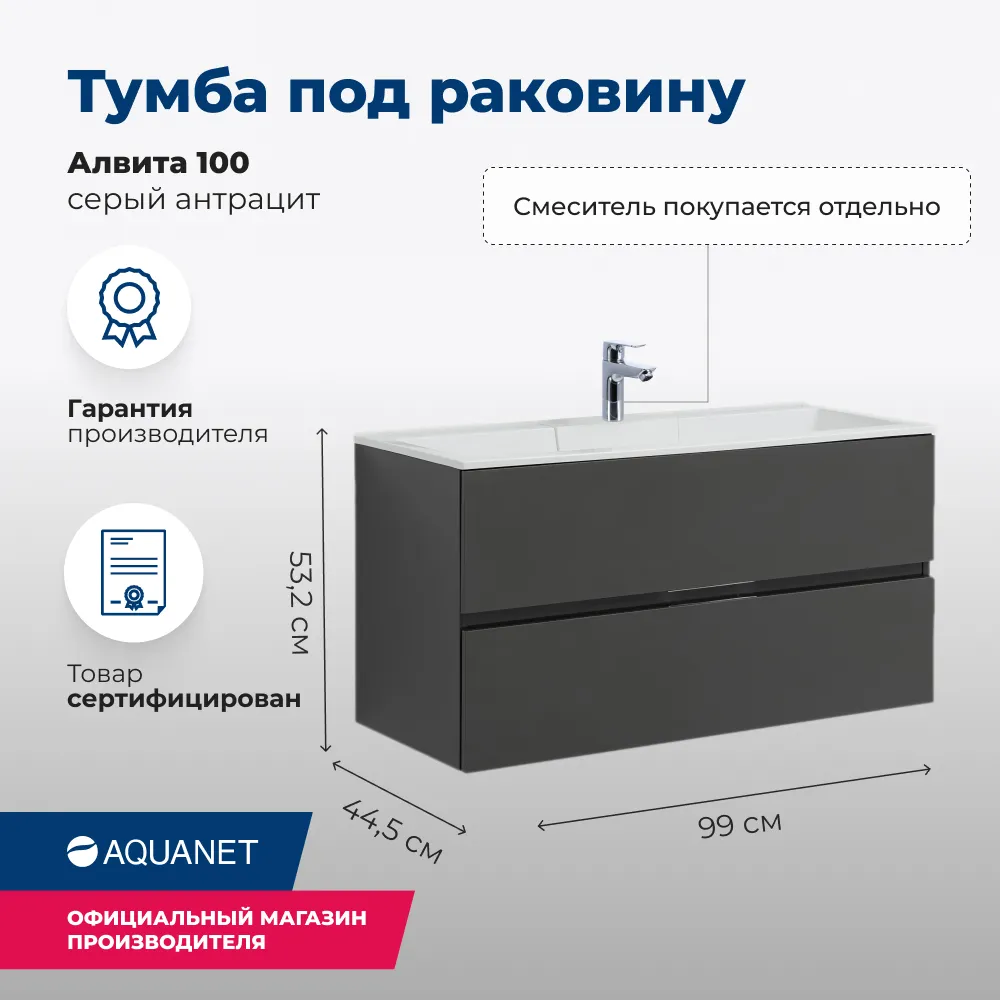 Характеристики товара Тумба под умывальник подвесная Aquanet Алвита 100 серый антрацит 00240112