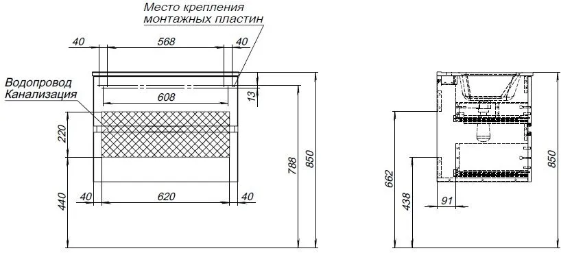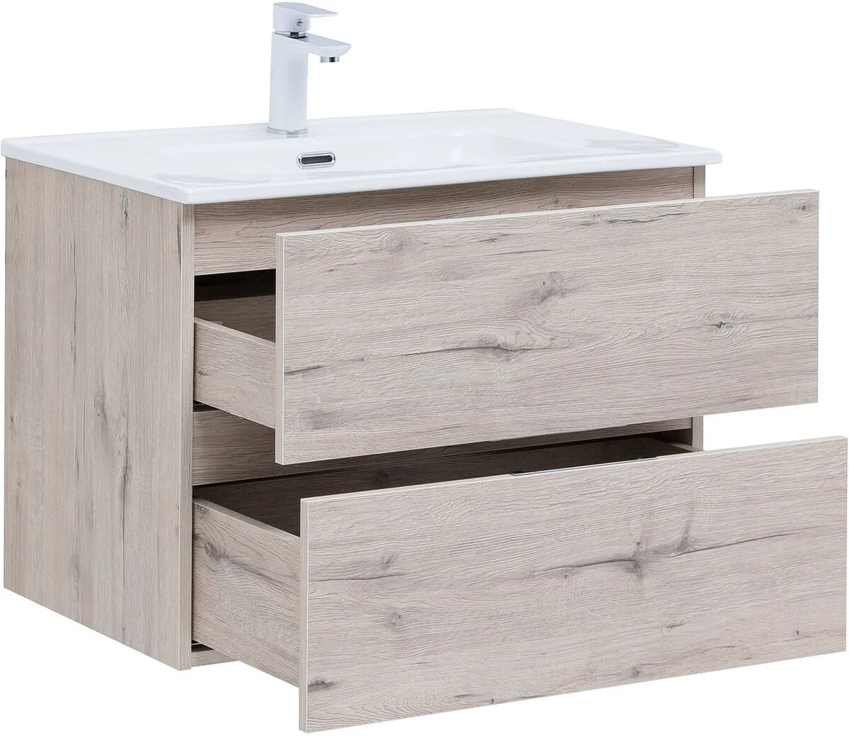Характеристики товара Тумба под умывальник подвесная Aquanet Алвита New 70 дуб веллингтон/белый 00303910