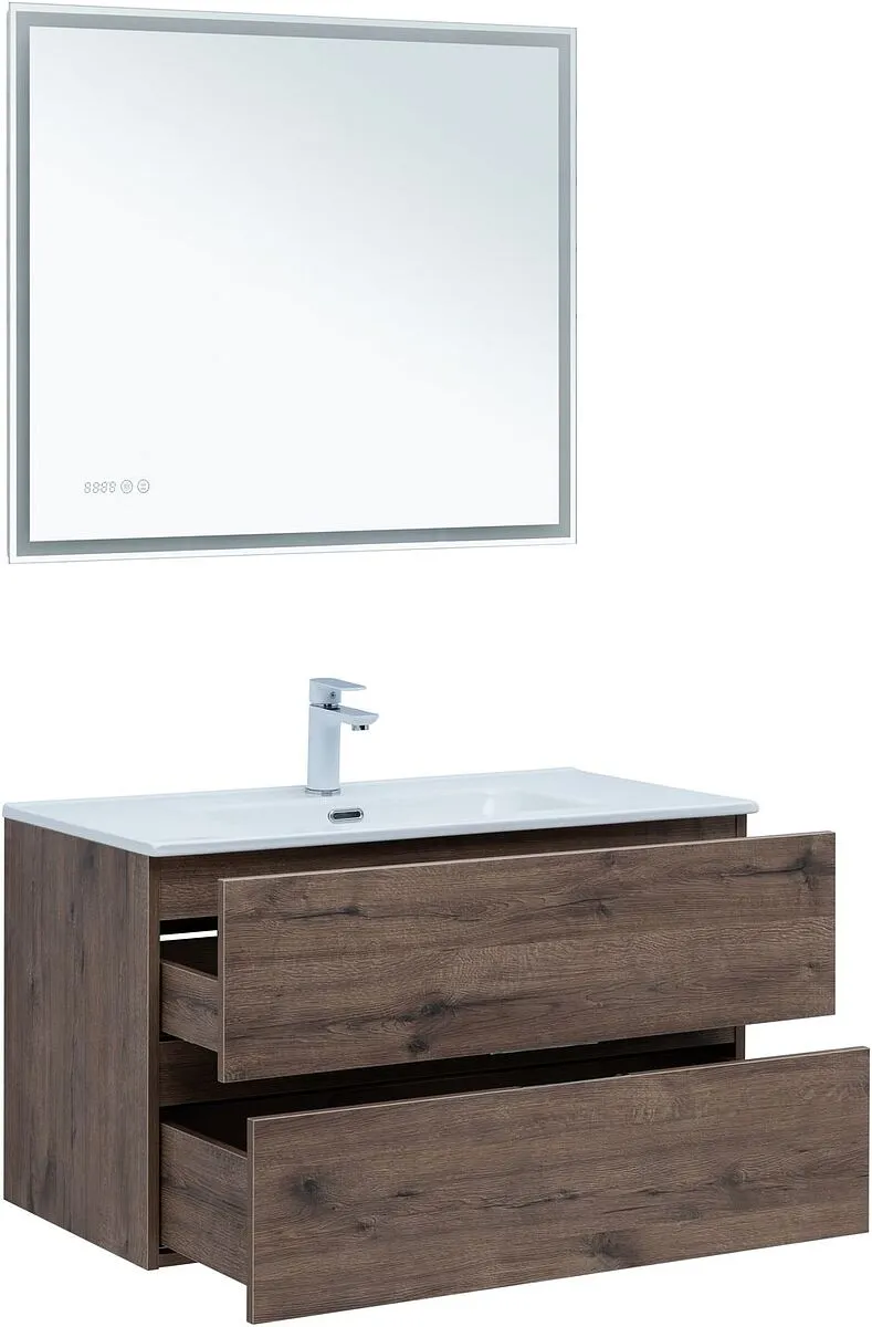 Тумба под умывальник подвесная Aquanet Алвита New 90 дуб веллингтон/табак 00334187