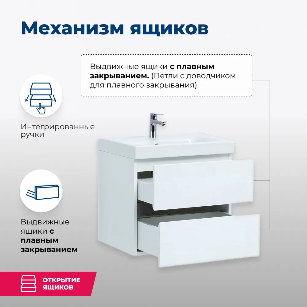 Характеристики товара Тумба под умывальник подвесная Aquanet Беркли 60 белый/дуб рошелье 00254289