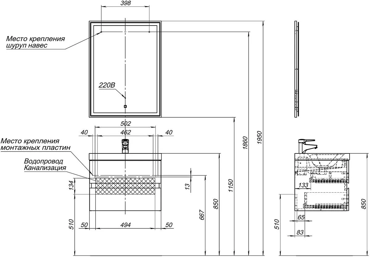 Характеристики товара Тумба под умывальник подвесная Aquanet Беркли 60 белый глянец 00302349