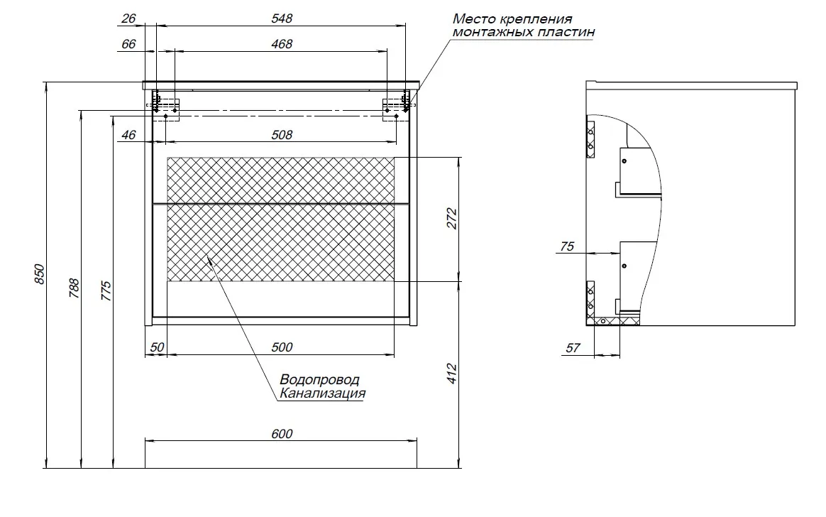 Характеристики товара Тумба под умывальник подвесная Aquanet Lino 60 (Flat) дуб веллингтон 00287541