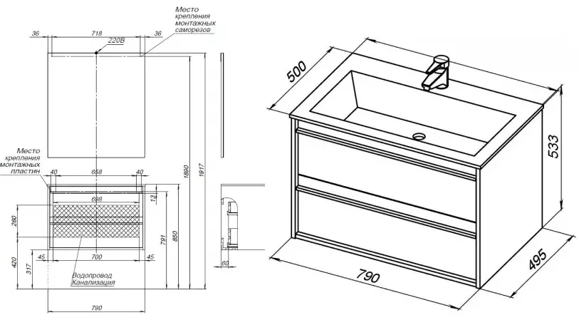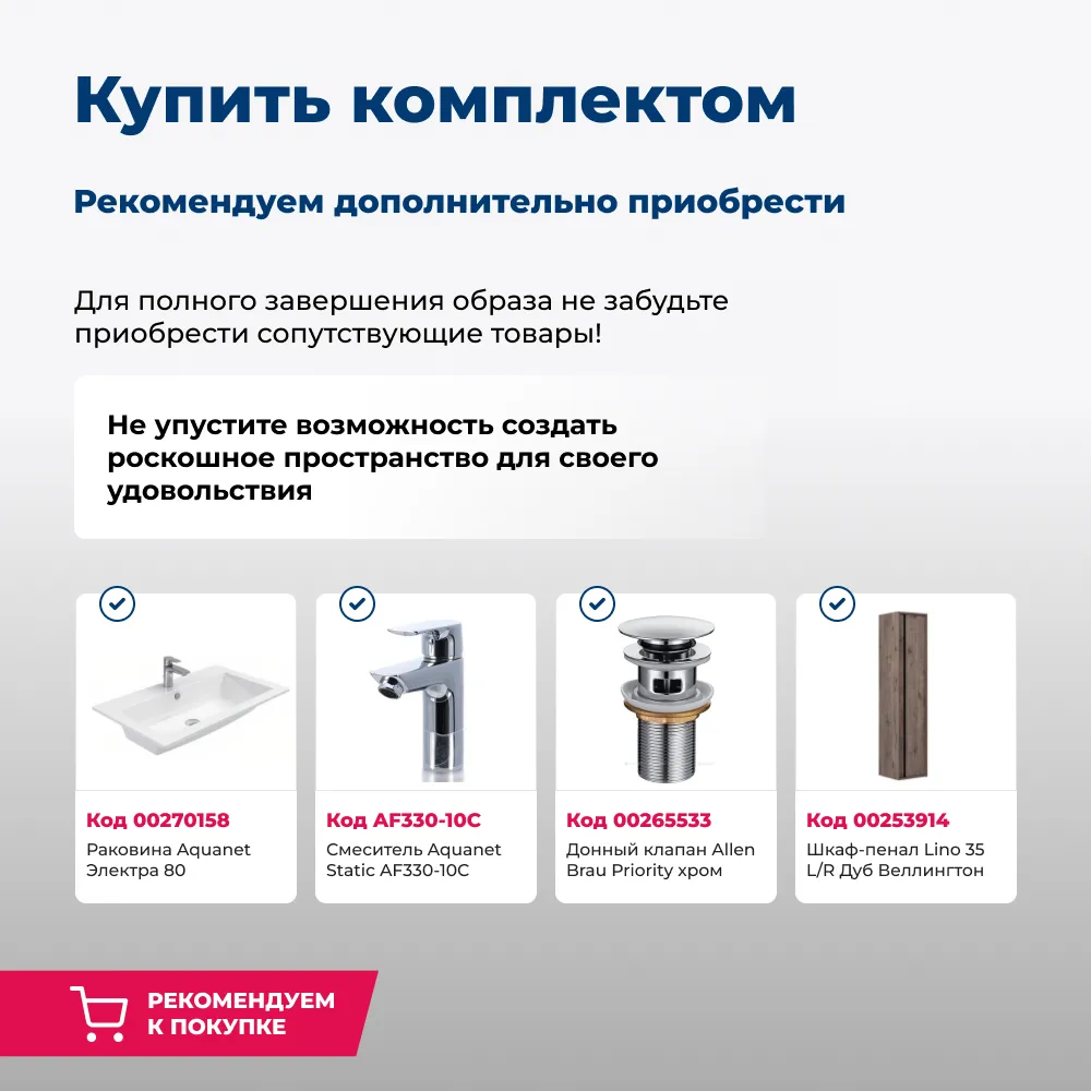 Характеристики товара Тумба под умывальник подвесная Aquanet Lino 80 дуб веллингтон 00253912