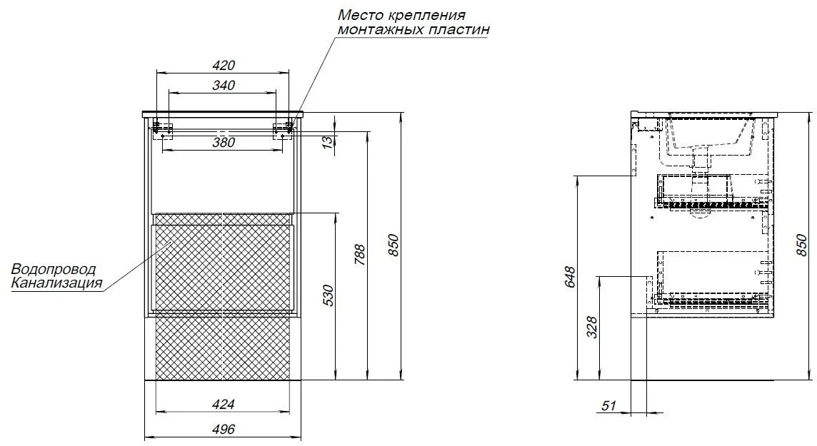 Характеристики товара Тумба под умывальник подвесная Aquanet Милан 50 дуб рустикальный 00336376