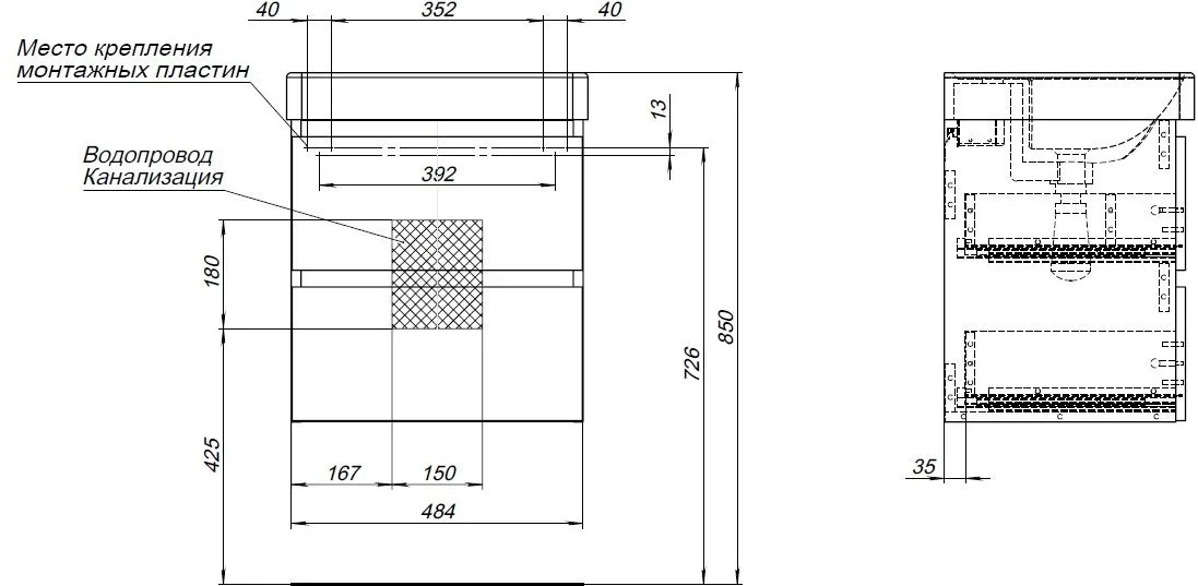 Характеристики товара Тумба под умывальник подвесная Aquanet Вега 50 маренго 00329588