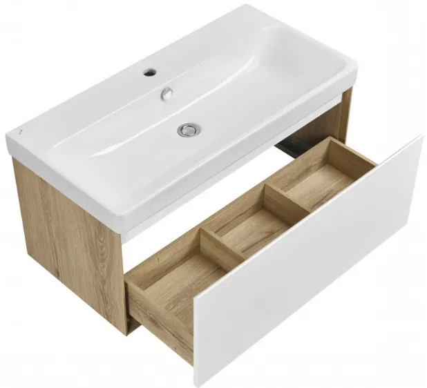 Тумба под умывальник подвесная Aquaton Либерти 90 белый/дуб эльвезия 1A279901LYC70