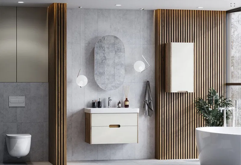 Характеристики товара Тумба под умывальник подвесная Aquaton Оливия 80 бежевый/дуб веллингтон 1A283101OLVG0