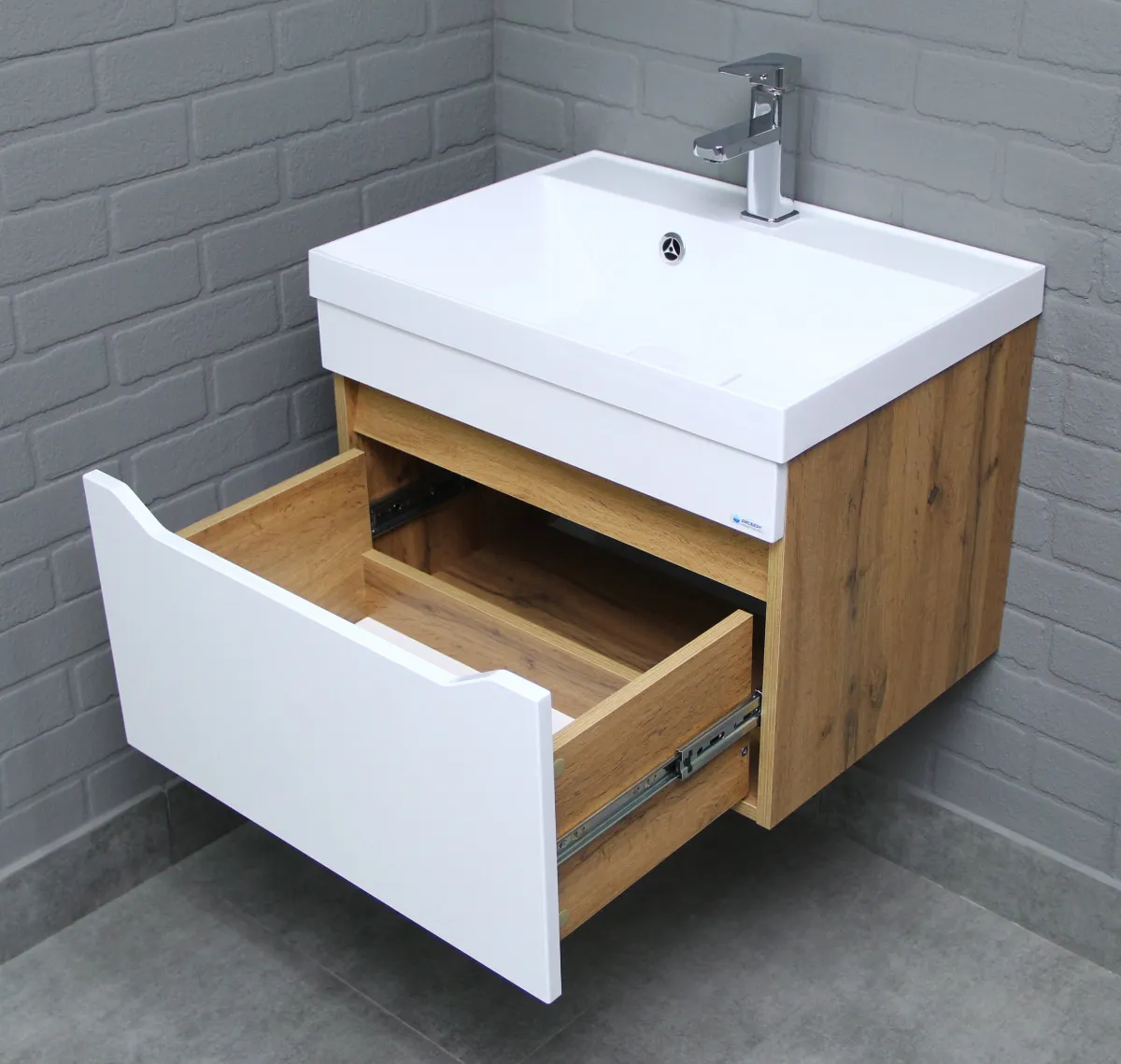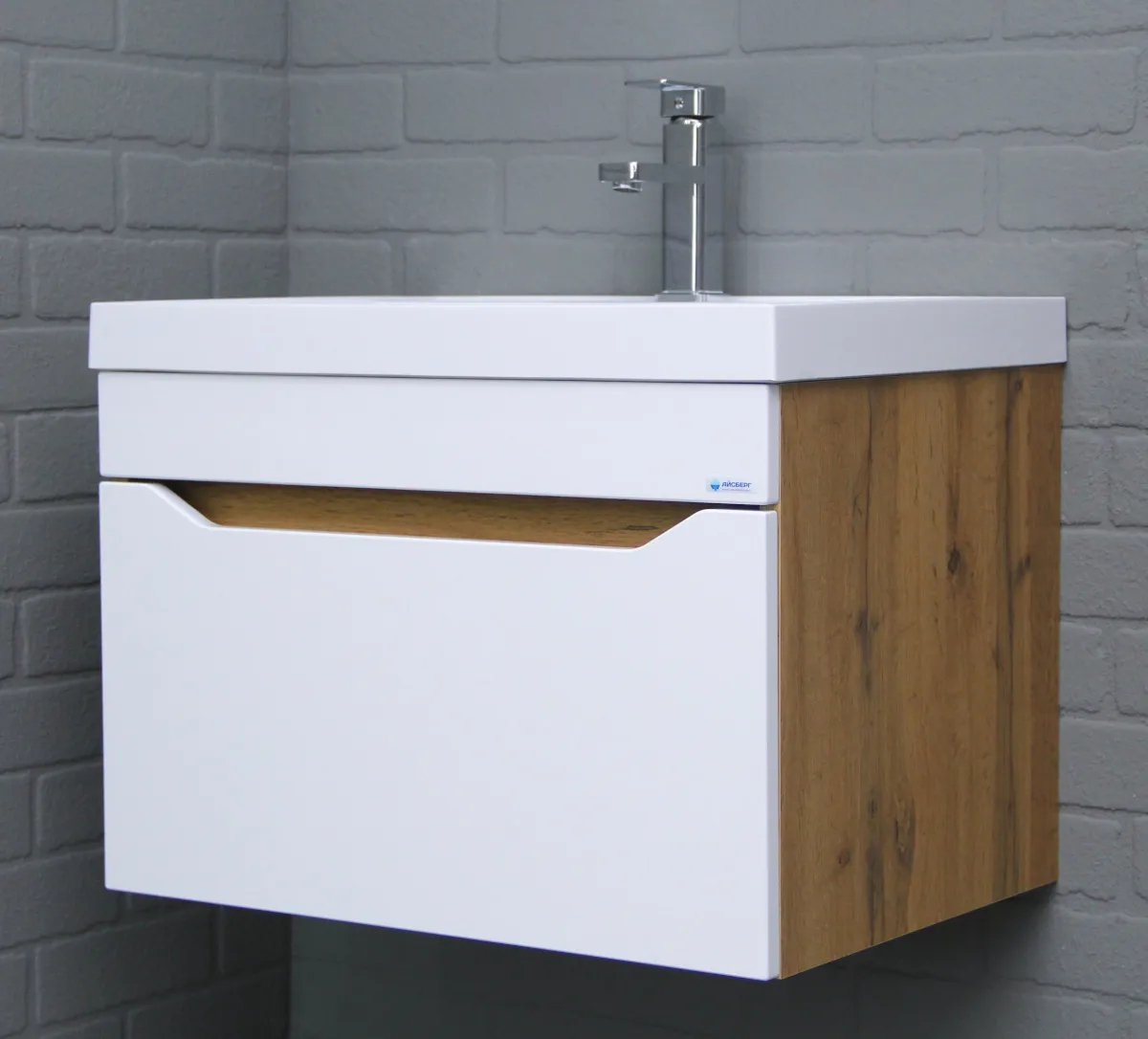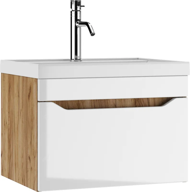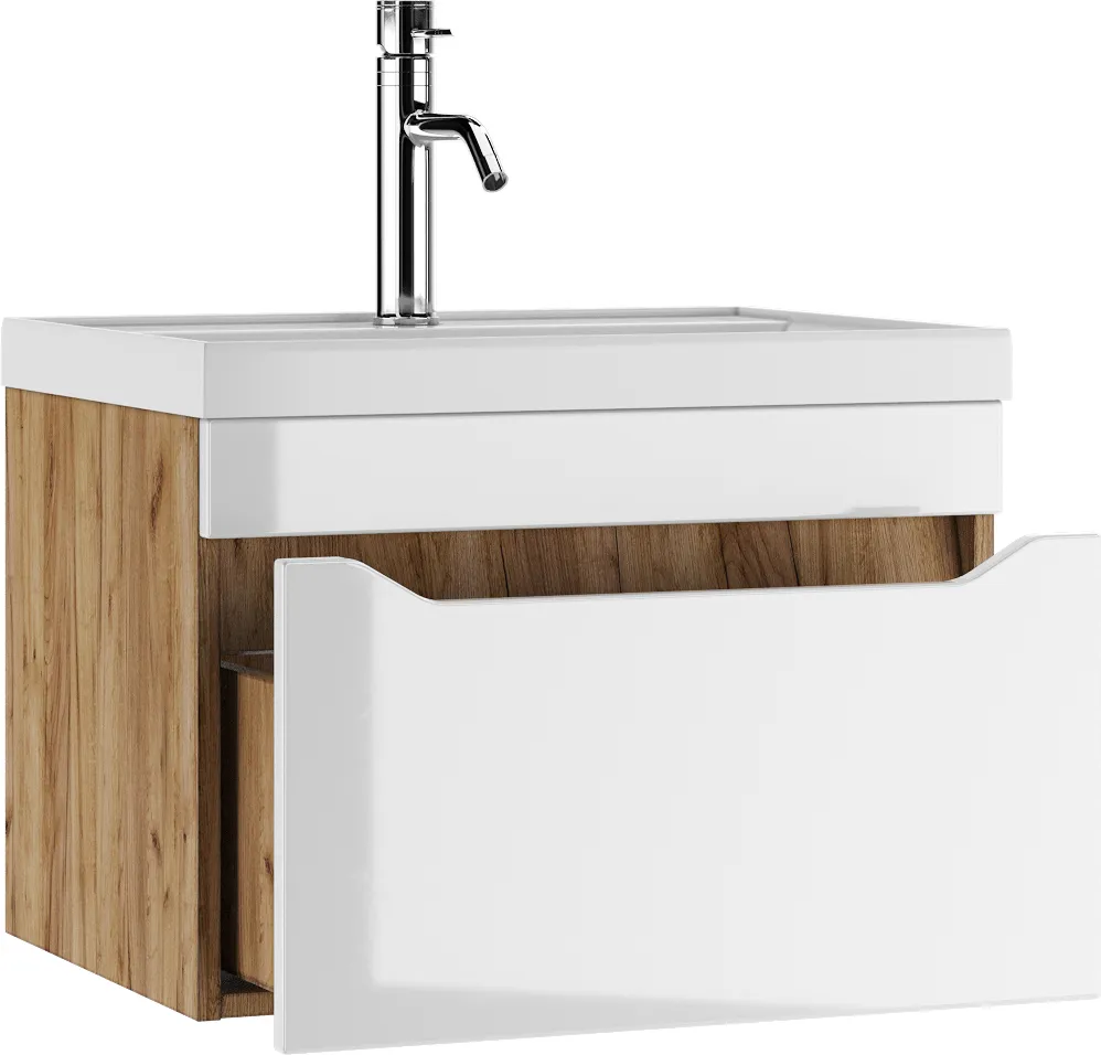 Тумба под умывальник подвесная Айсберг Ева 60 белый/дуб вотан DA5906T