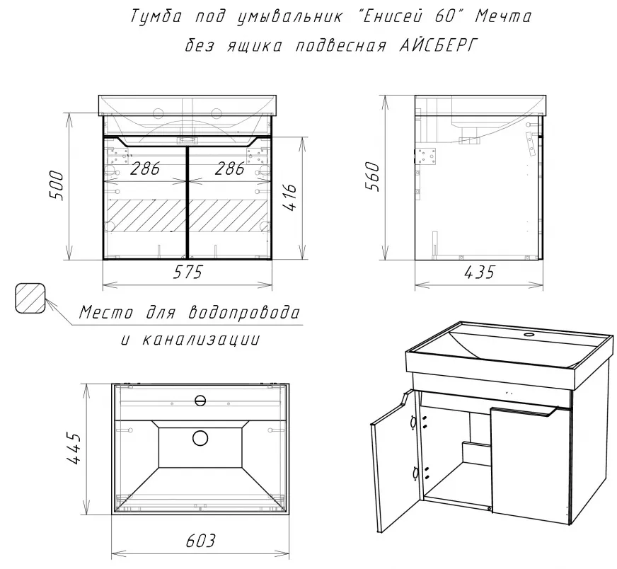 Характеристики товара Тумба под умывальник подвесная Айсберг Мечта 60 белый DM2310T