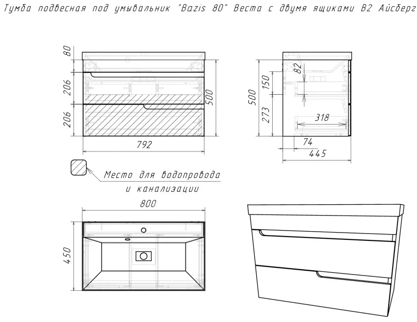 Характеристики товара Тумба под умывальник подвесная Айсберг Веста 80 белый DV5917T
