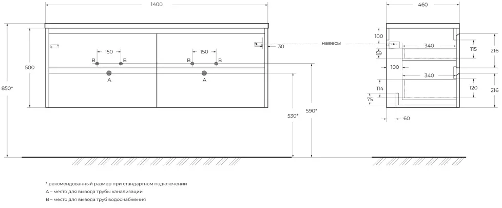 Характеристики товара Тумба под умывальник подвесная BelBagno KRAFT 140 Cemento Grigio KRAFT-1400-4C-SO-2-CG