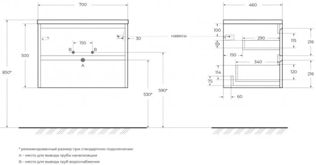 Характеристики товара Тумба под умывальник подвесная BelBagno KRAFT 70 Rovere Tabacco KRAFT-700-2C-SO-RT