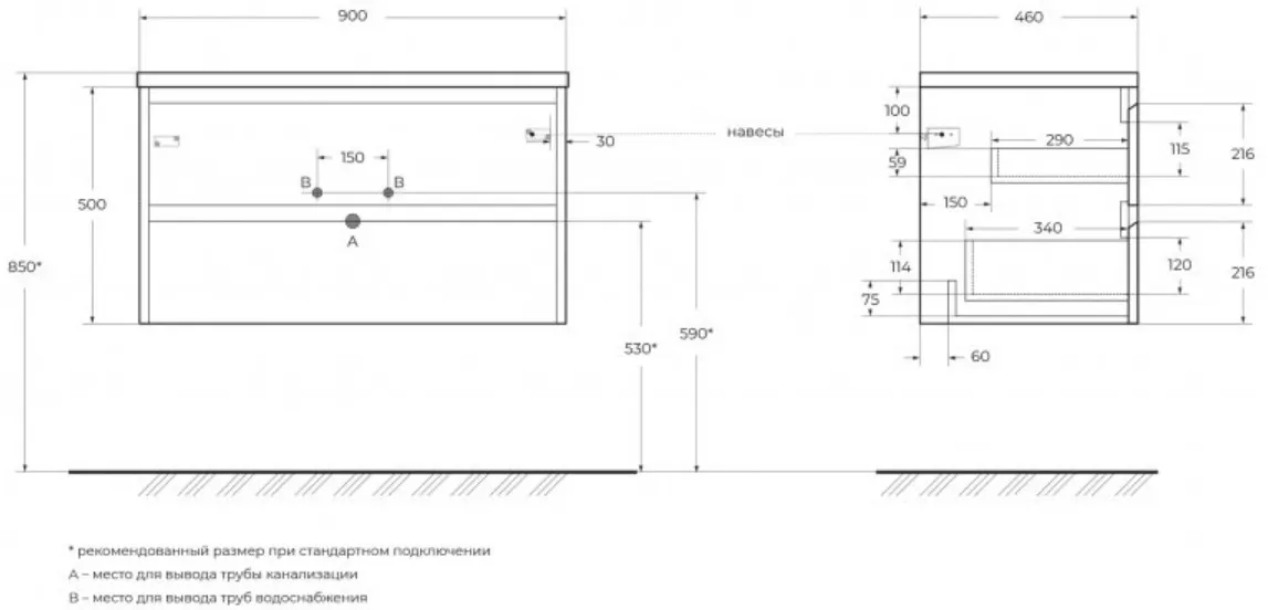 Характеристики товара Тумба под умывальник подвесная BelBagno KRAFT 90 Bianco Opaco KRAFT-900-2C-SO-BO