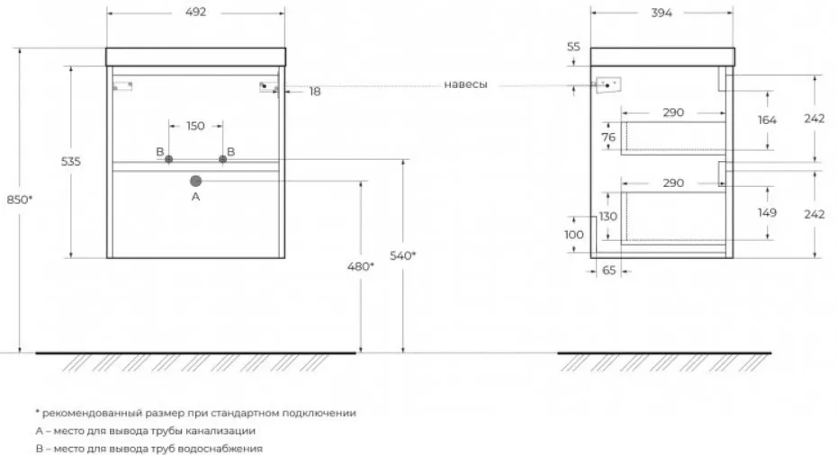 Характеристики товара Тумба под умывальник подвесная BelBagno PIETRA MINI 50 Bianco Lucido PIETRA MINI-500AS-2C-SO-BL