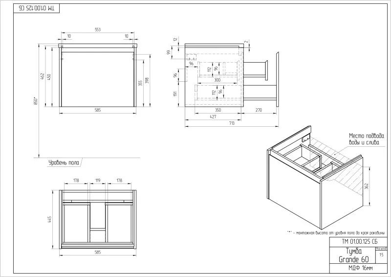 Характеристики товара Тумба под умывальник подвесная Cersanit Grande 60 бежевый 64309