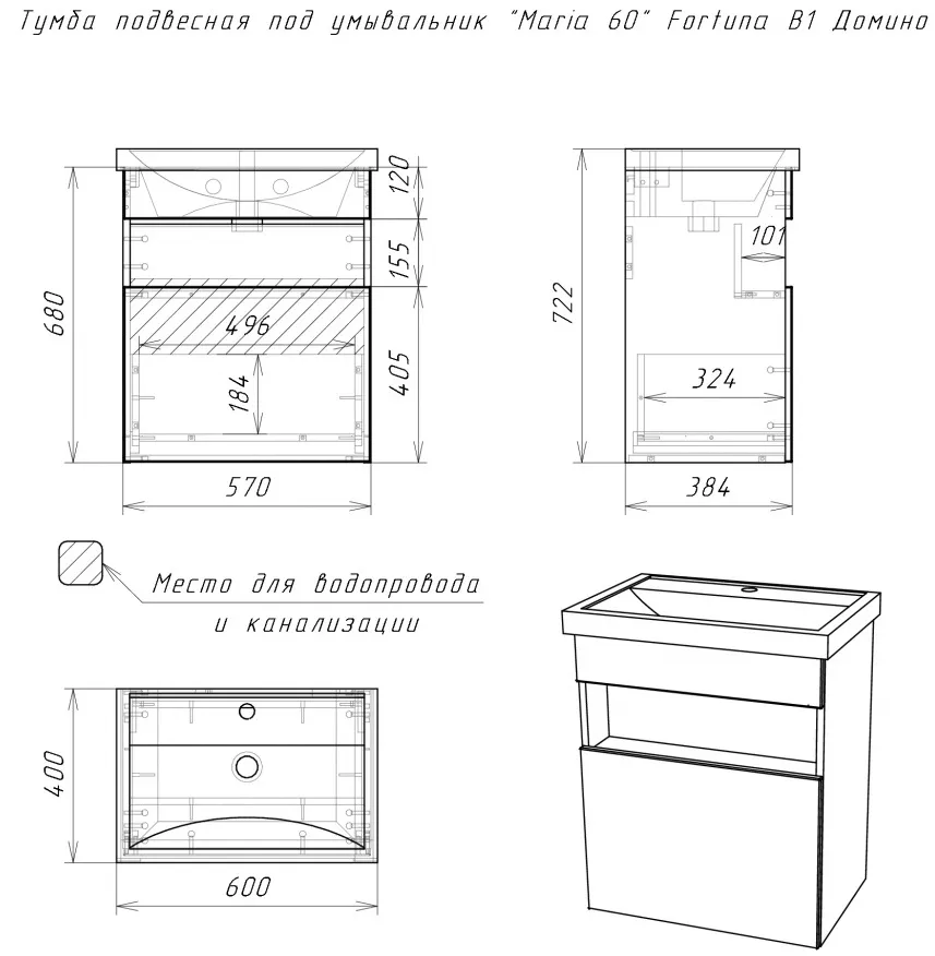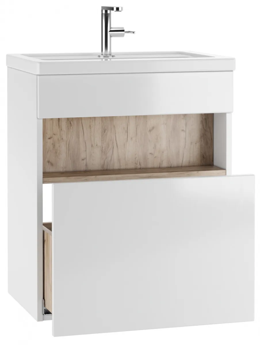 Характеристики товара Тумба под умывальник подвесная Домино Fortuna 60 белый/дуб вотан DF3103T