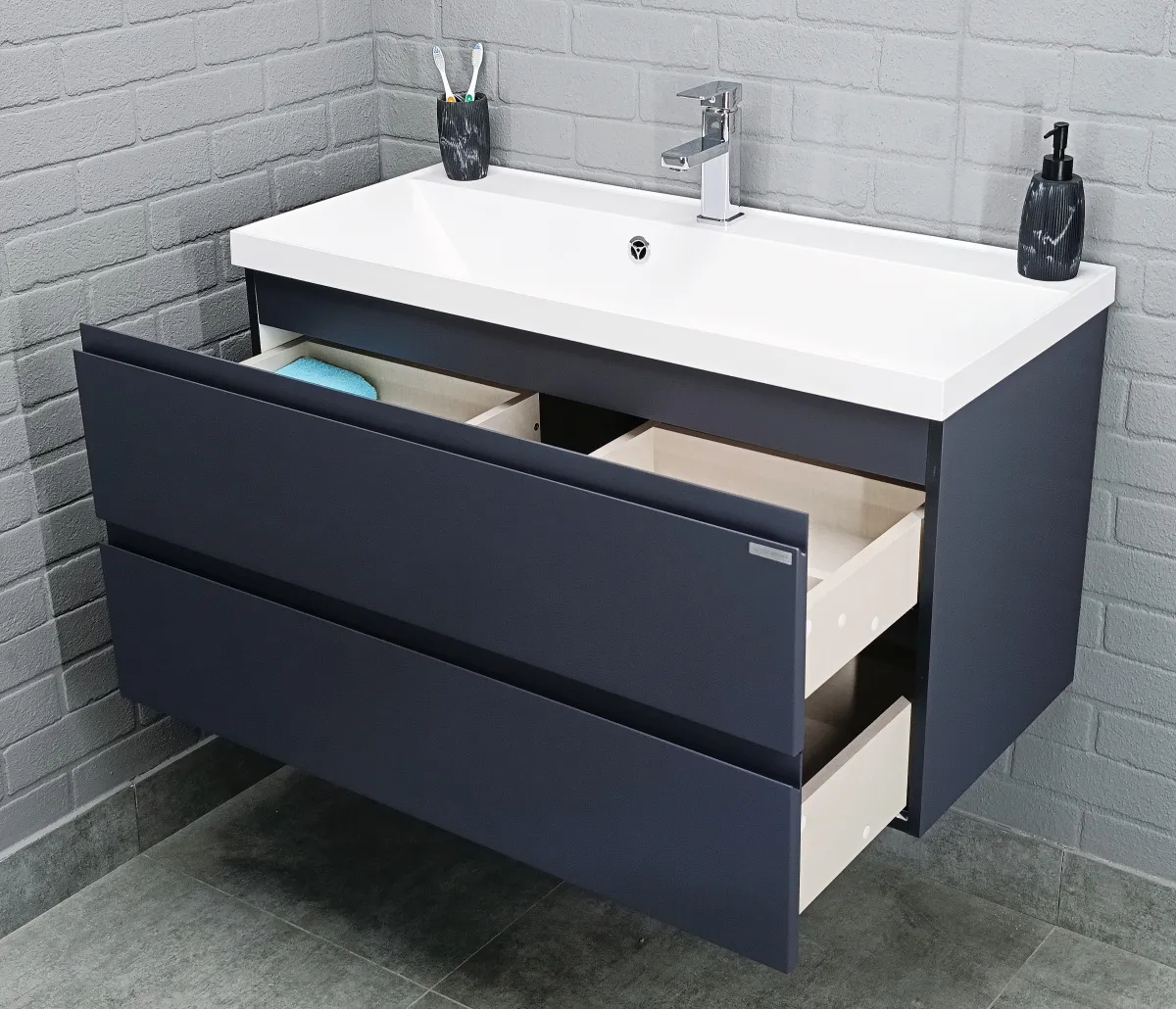 Тумба под умывальник подвесная Домино Graffo 100 графит DGr2404T