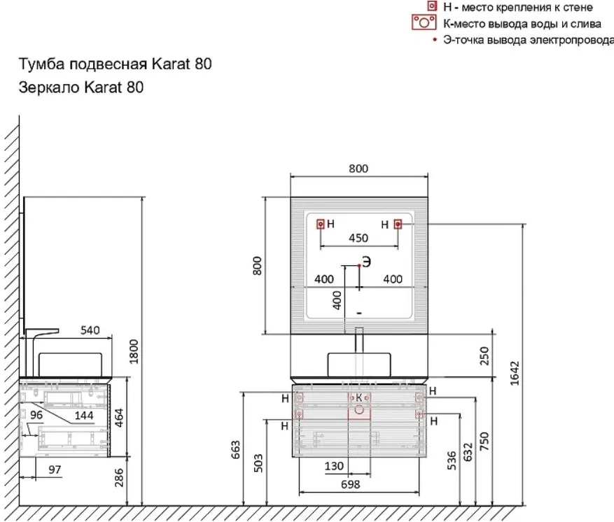 Характеристики товара Тумба под умывальник подвесная Jorno Karat 80 белый Kar.01.80/P/W