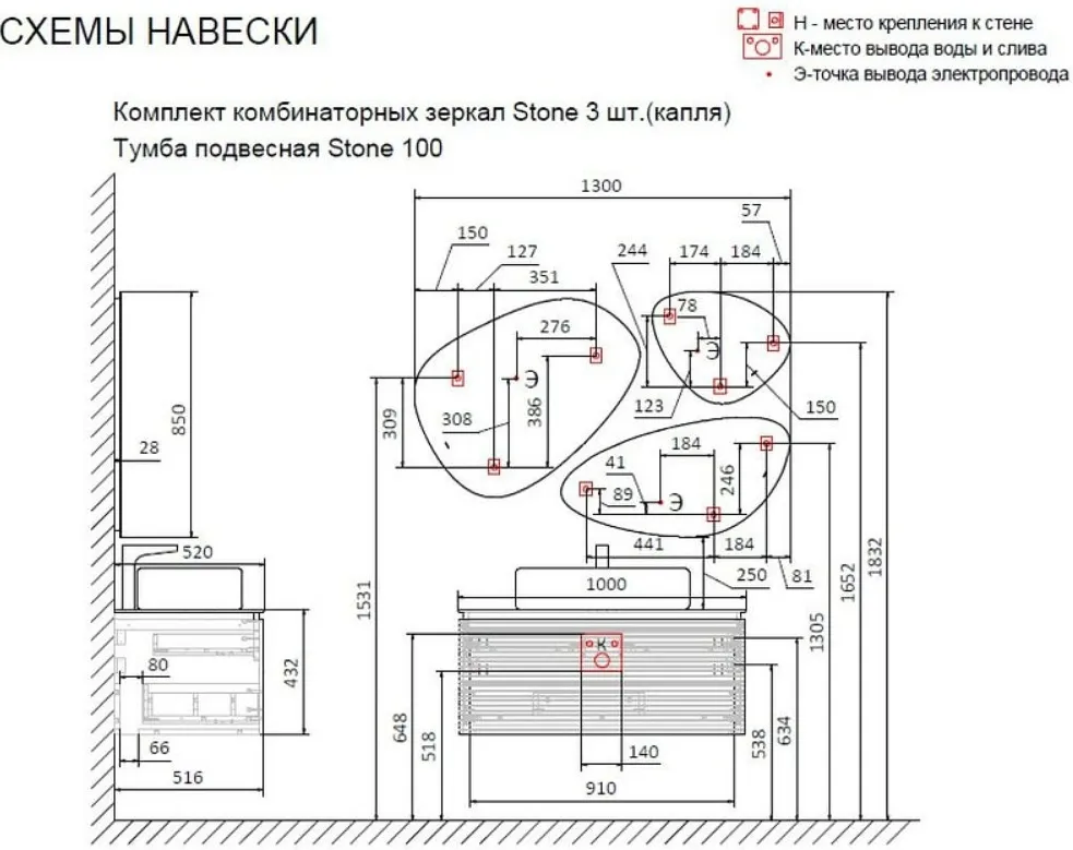 Характеристики товара Тумба под умывальник подвесная Jorno Stone 100 антрацит Stn.01.100/P/A/JR