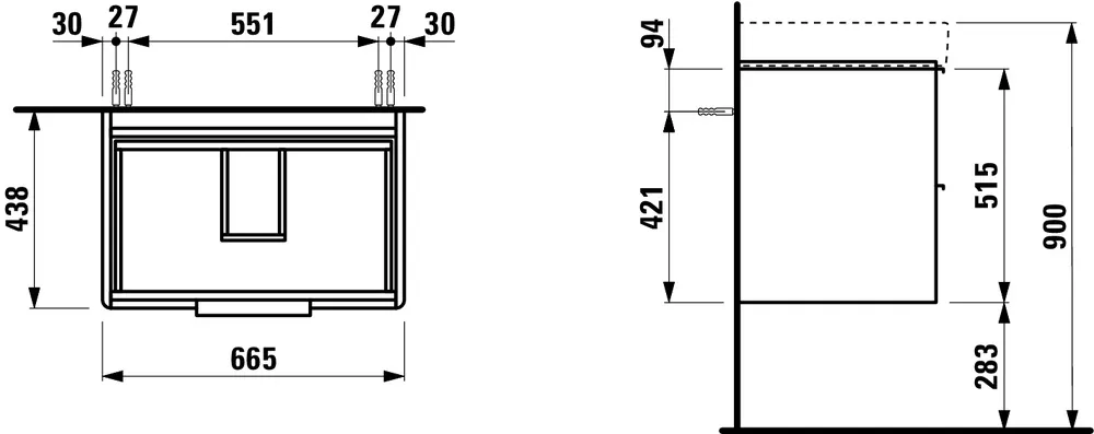 Тумба под умывальник подвесная Laufen Base 70 белый матовый 4.0233.2.110.260.1