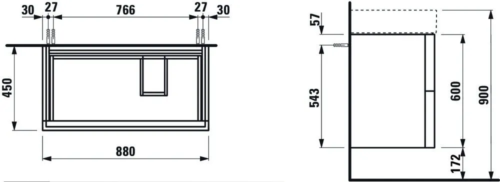 Тумба под умывальник подвесная Laufen Kartell 90 белый матовый 4.0760.8.033.640.1