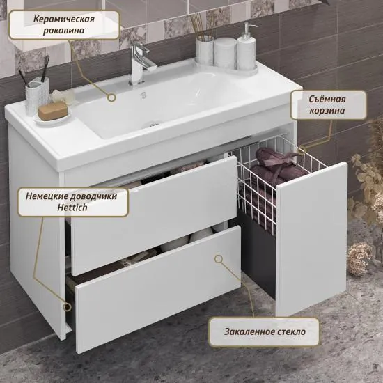 Характеристики товара Тумба под умывальник подвесная Opadiris Фреш 100 белый 00-00007083