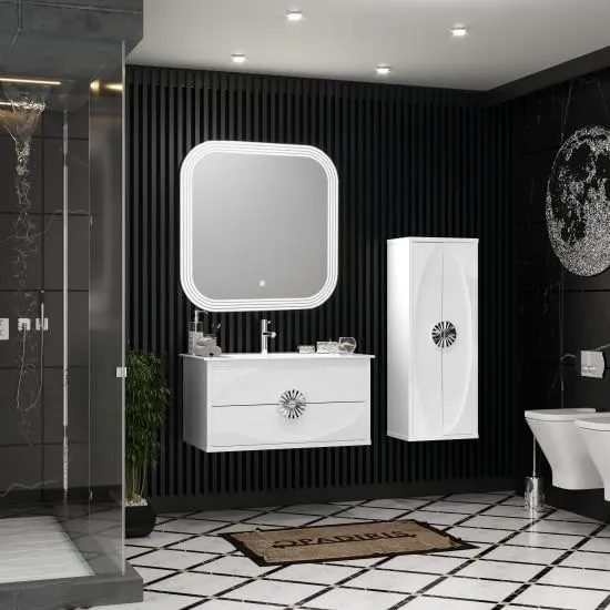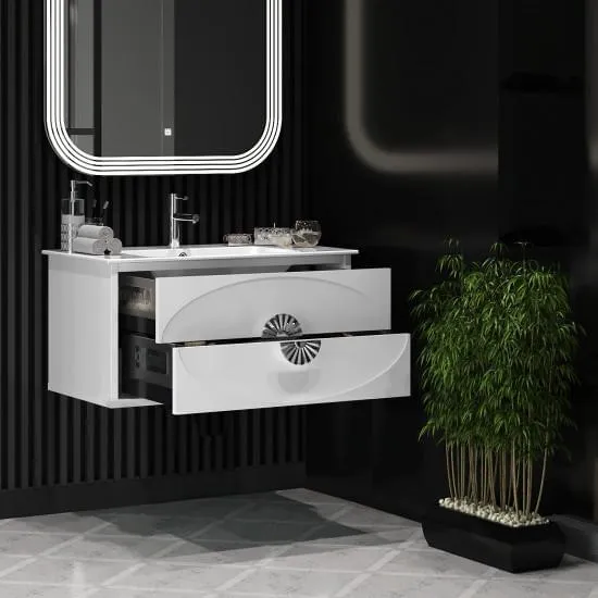Тумба под умывальник подвесная Opadiris Ибица 90 белый глянец/хром 00-00007282