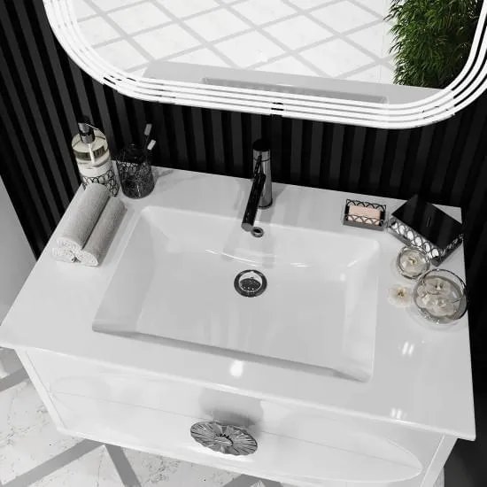 Характеристики товара Тумба под умывальник подвесная Opadiris Ибица 90 белый глянец/хром 00-00007282