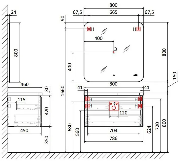 Характеристики товара Тумба под умывальник подвесная Raval Welto 80 белый Wel.01.80/P/W/RL